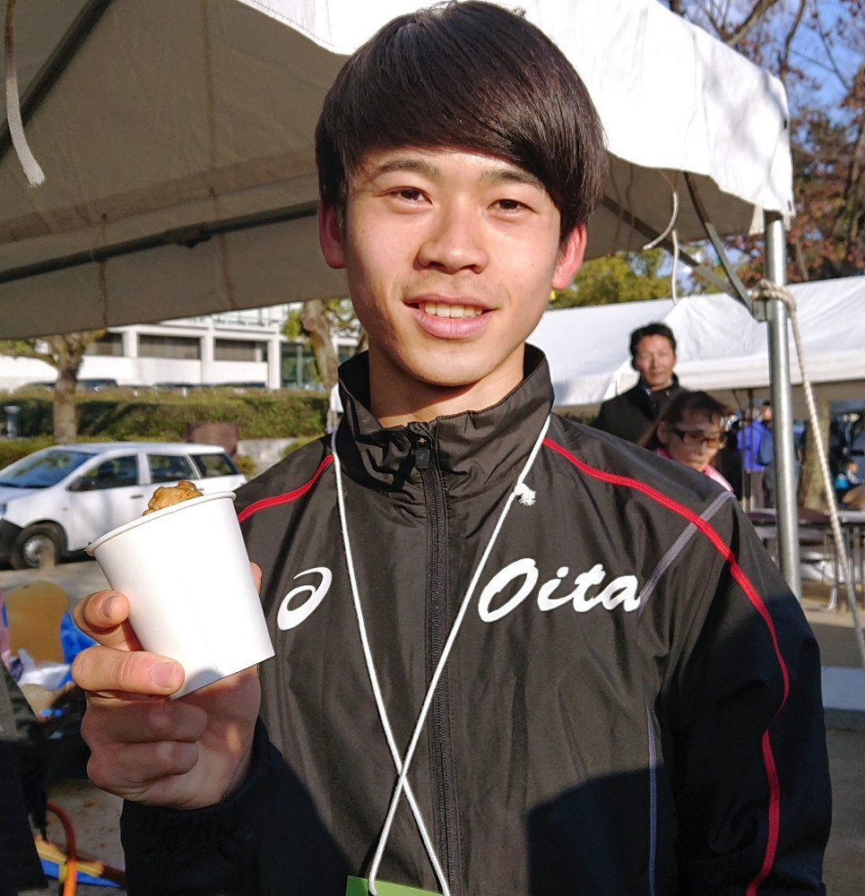 大会後、選手全員に大分県人会が用意した郷土料理の「とり天」が振る舞われた。「大好物です。おいしい」と笑顔。青学大のキーマンは箱根路で再び輝くため、安芸路で力強く走り出した。