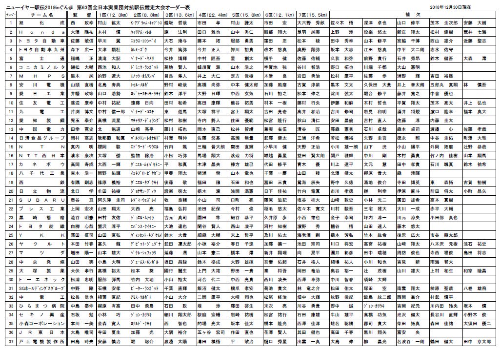 ニューイヤー駅伝のオーダーでた