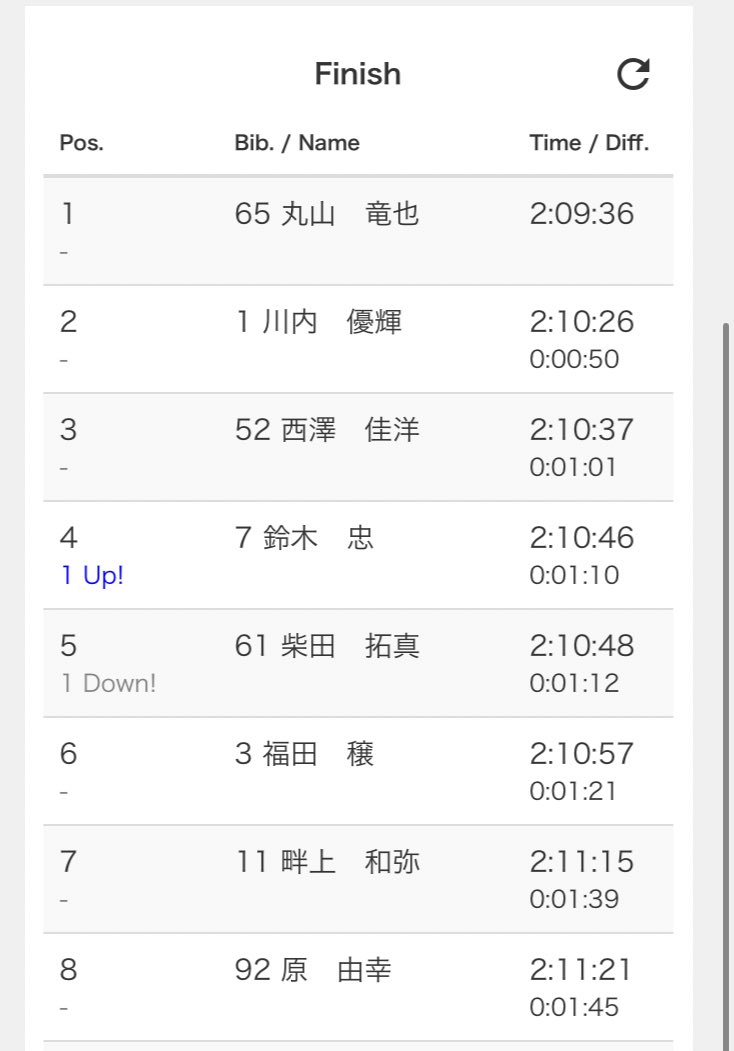 丸山竜也選手優勝2:09.36(速報値) pic.twitter.com/7AgyqCQigu