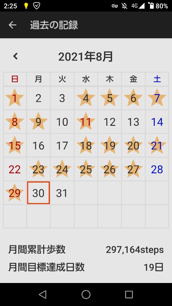 今見たら8月は38万歩やったわ