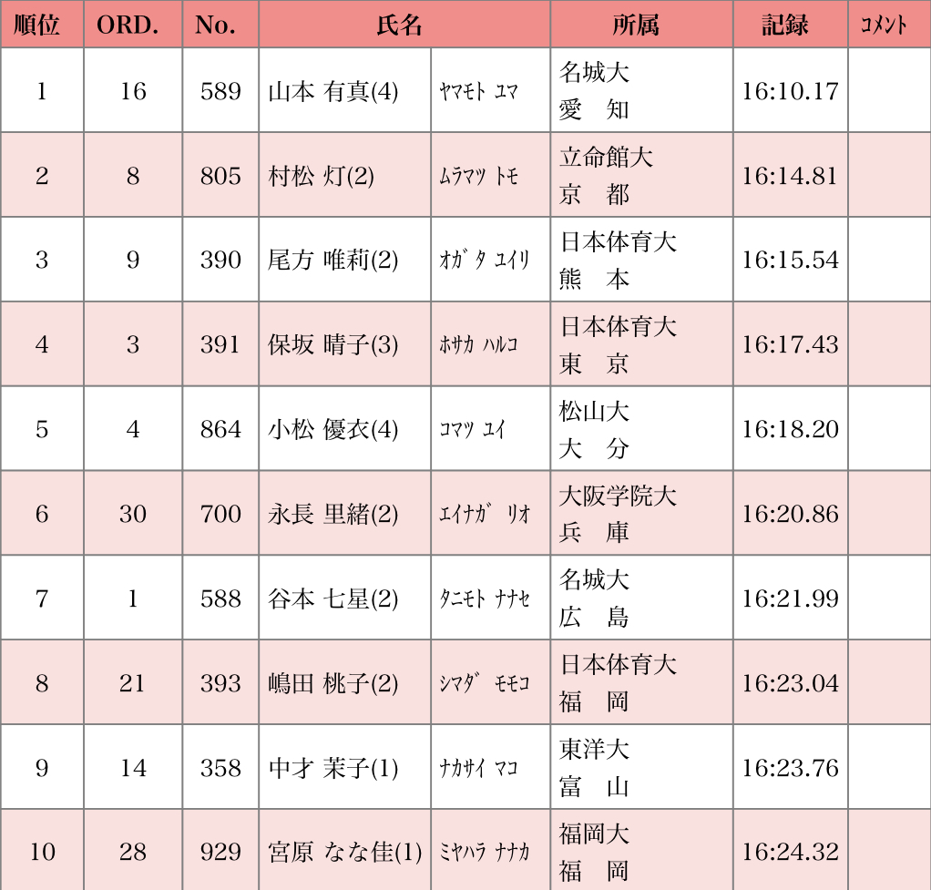 “【女子5000m】山本有真(名城大)が16分10秒17で優勝!◇日本インカレ”の続きを読む