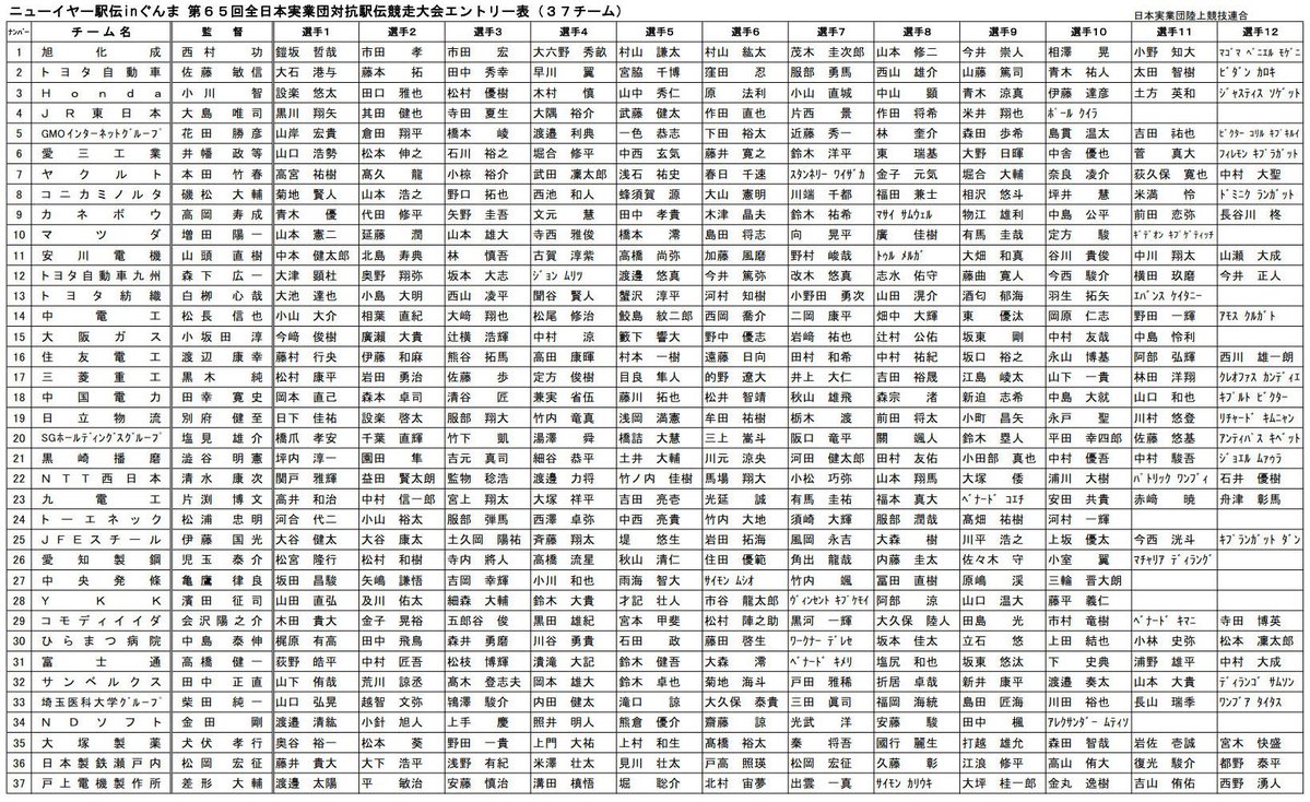 第97回東京箱根間大学駅伝競走 チームエントリー